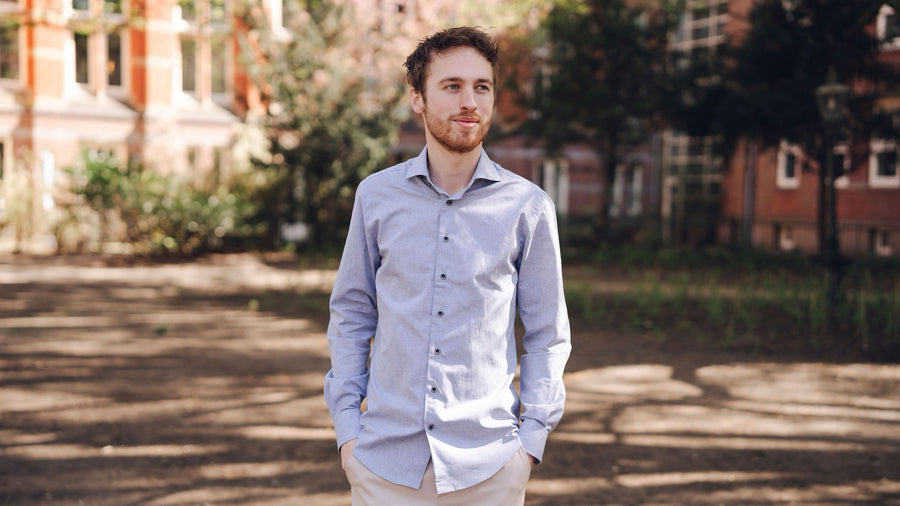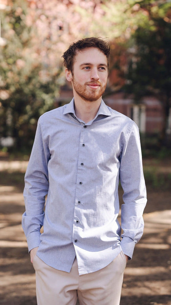 Blauw overhemd met microstructuur en subtiele print